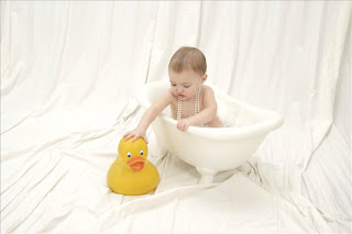 She just finished eating a banana which she got all over her shirt... hence the photos with no shirt on.