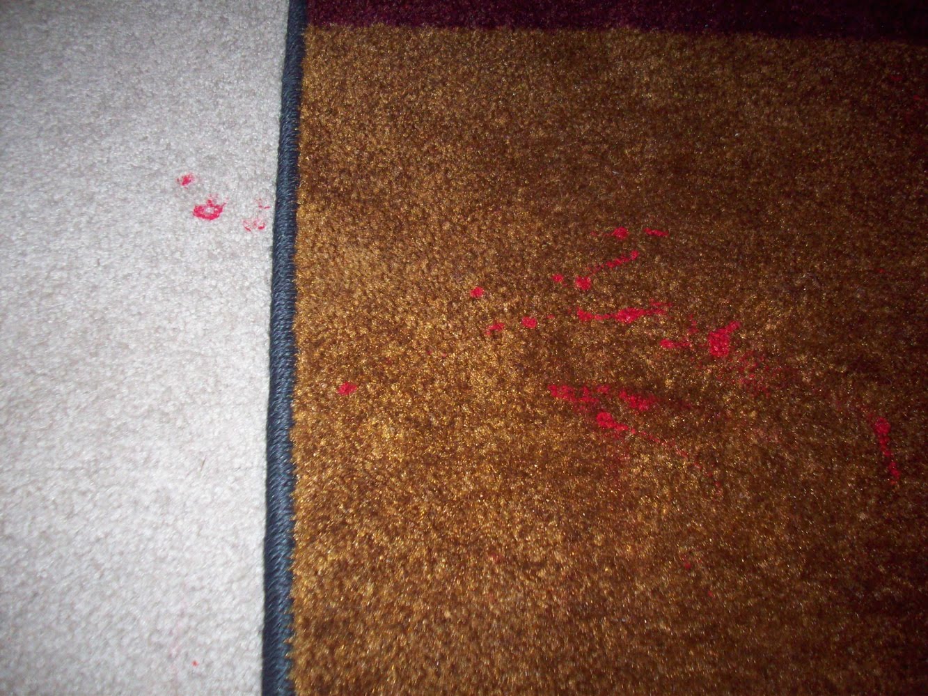 Some of you may remember the Dorothy Lynch Dressing mess... Well this mess tops that one. We were just about to leave for Gracie's one year photo session and she smashed a bottle of RED nail polish on the floor shattering the bottle. Not only did she smash it on our cream colored carpet... she smeared it all over herself. We were leaving in 5 min. for photos so we quick scrubbed her with nail polish remover, gave her a bath, and after photos bought a new rug for the living room.
